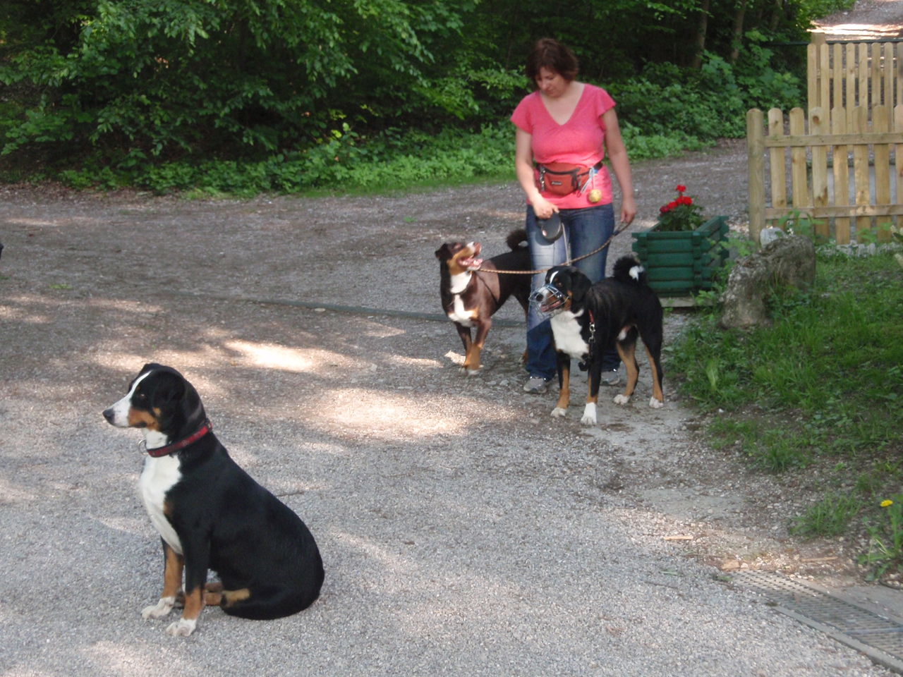 Výcvik - veleúspěšný, aplík si nás přes prázdniny daleko lépe ochočil a panička poslouchá na první štěk:-).